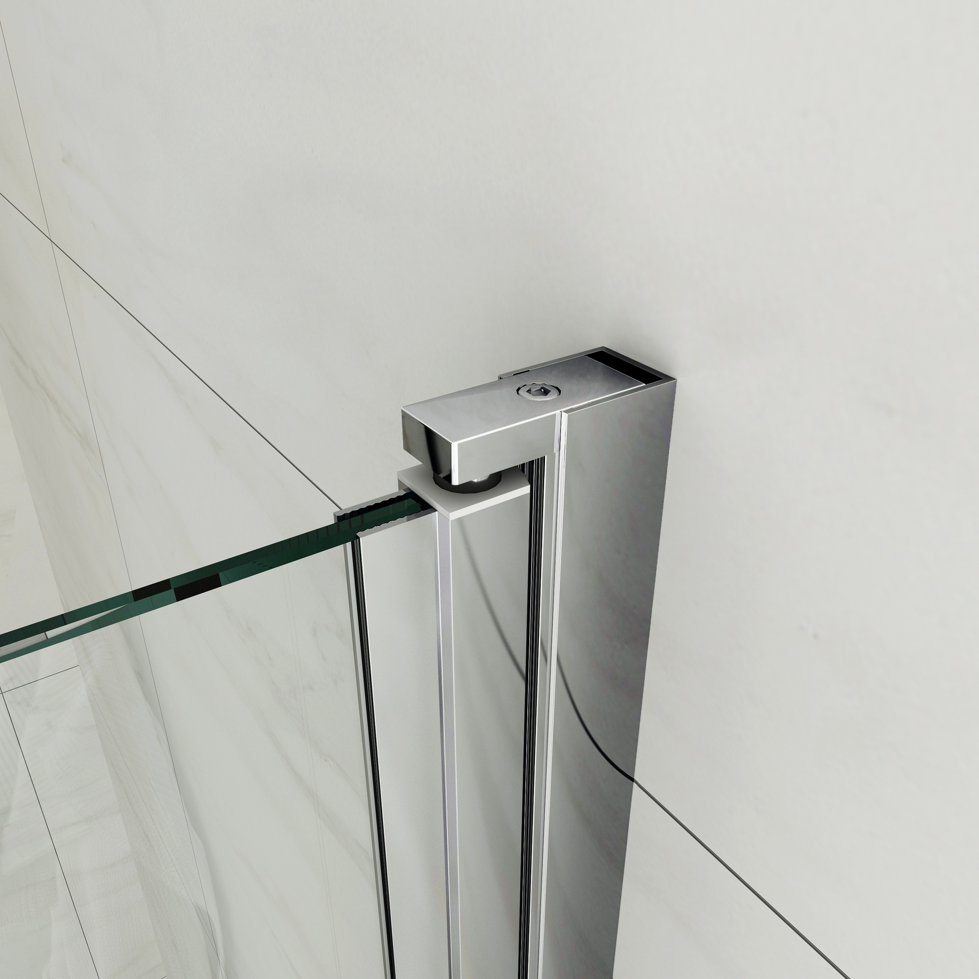 mit schmalem Wandanschlussprofil hebt beim Öffnen der Tür diese komfortabel an. Der Beschlag ist für 6 mm Glas geeignet und in verschiedenen Oberflächen erhältlich.