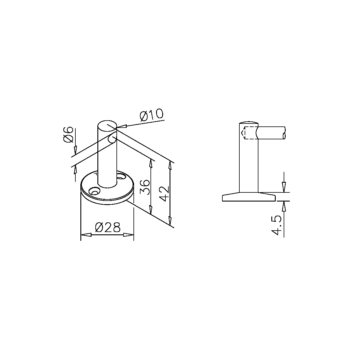 Die Endstütze Erica wird als Relingstütze und auch bei Flascheborden eingesetzt. Diese wird aufgeschraubt oder mit einem entsprechenden Pin an der Unterseite aufgeschlagen. Daher ist die Endstütze Erica nur für Holzoberflächen geeignet.