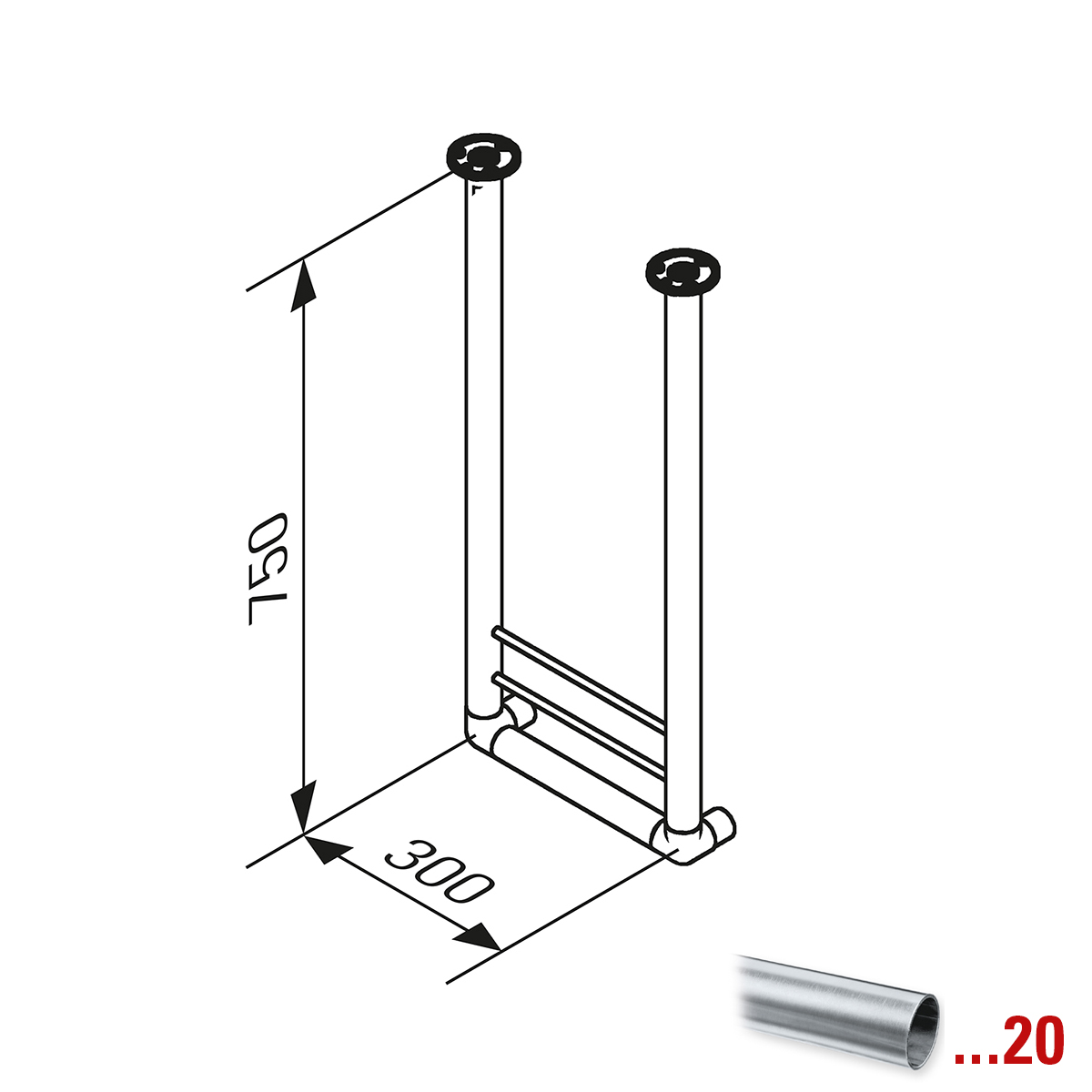 Ausführungen: Endstütze (Längen 650 mm und 1150 mm), Mittelstütze