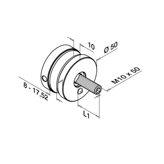 mit M10 Gewinde | zur Rohr-/Wand-/Bodenmontage | für 6 - 17,52 mm starkes laminiertes/monolithisches Glas | mit unbehandelter Oberfläche für den Innenbereich und Edelstahl-Effekt für den Innen- und Außenbereich