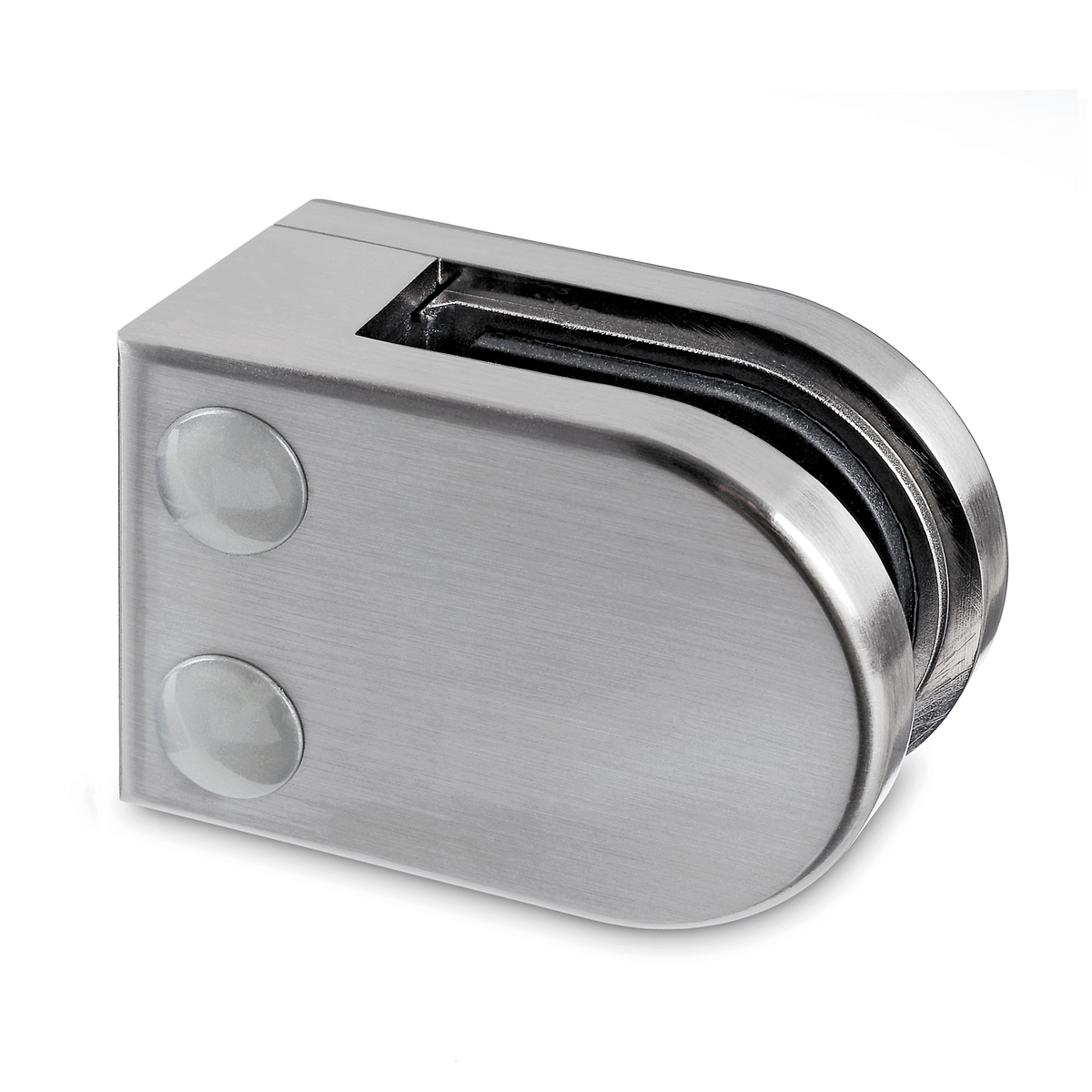 in halbrunder Form gehört zum vielseitigen Sortiment an Glasklemmen und ist genau so vielseitig einsetzbar, wie die Anzahl der angebotenen Varianten. In der Anschlussart flach sind die Klemmen zur Wandmontage oder für ein Vierkantrohr geeignet und sind zusätzlich auch für Rundrohre von 48 - 50 mm und 38 - 42 mm verfügbar.