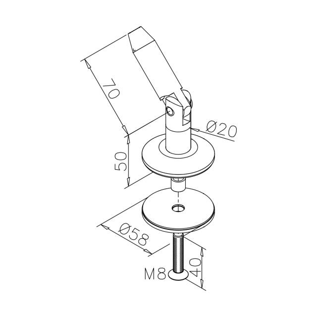 Der Punkthalter AMINATA ist eine hochwertige Lösung für die sichere und optisch ansprechende Montage freitragender Glasvordächer. Durch das integrierte Zugstangengelenk mit M10-Gewindestange lässt sich das Vordach individuell an die baulichen Gegebenheiten anpassen. Die Verbindung zur Wand erfolgt zuverlässig über das Gelenk, während ein 58 mm großer Glasplattenhalter für eine feste und belastbare Fixierung des Glases sorgt.