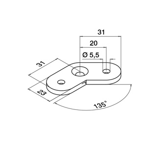 Handlauf-Anschlussplate, 135°, Q-line, MOD 1801, V2A^