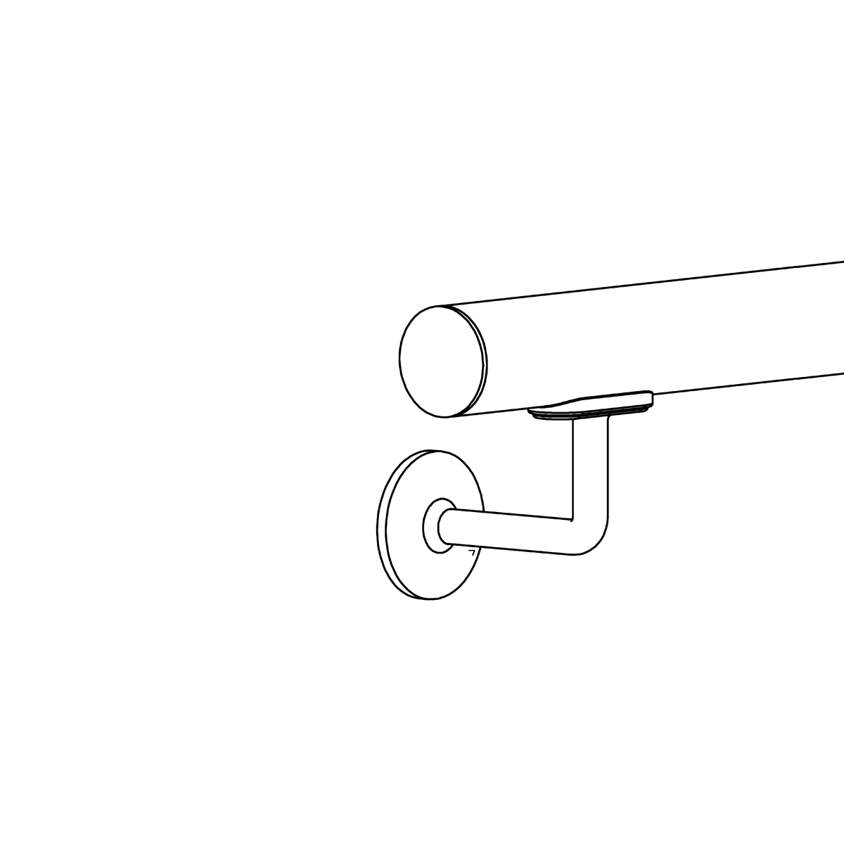 Der Handlauf Riwanja mit gewölbten Endkappen wird von einer Handlaufstütze im 90° Winkel getragen und ist für die Wandmontage geeignet.