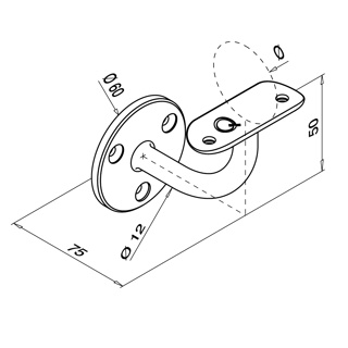 Handlaufhalter für Wandbefestigung, Q-line, MOD 0112, V4A^