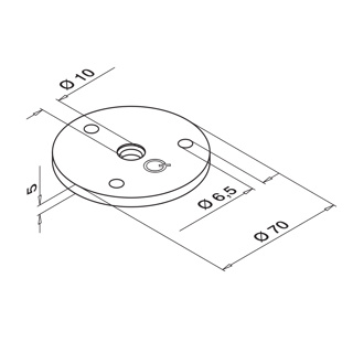 Handlaufplatte, 3 Löcher, Ø70 x 5 mm, Stab Ø10 mm, V2A^