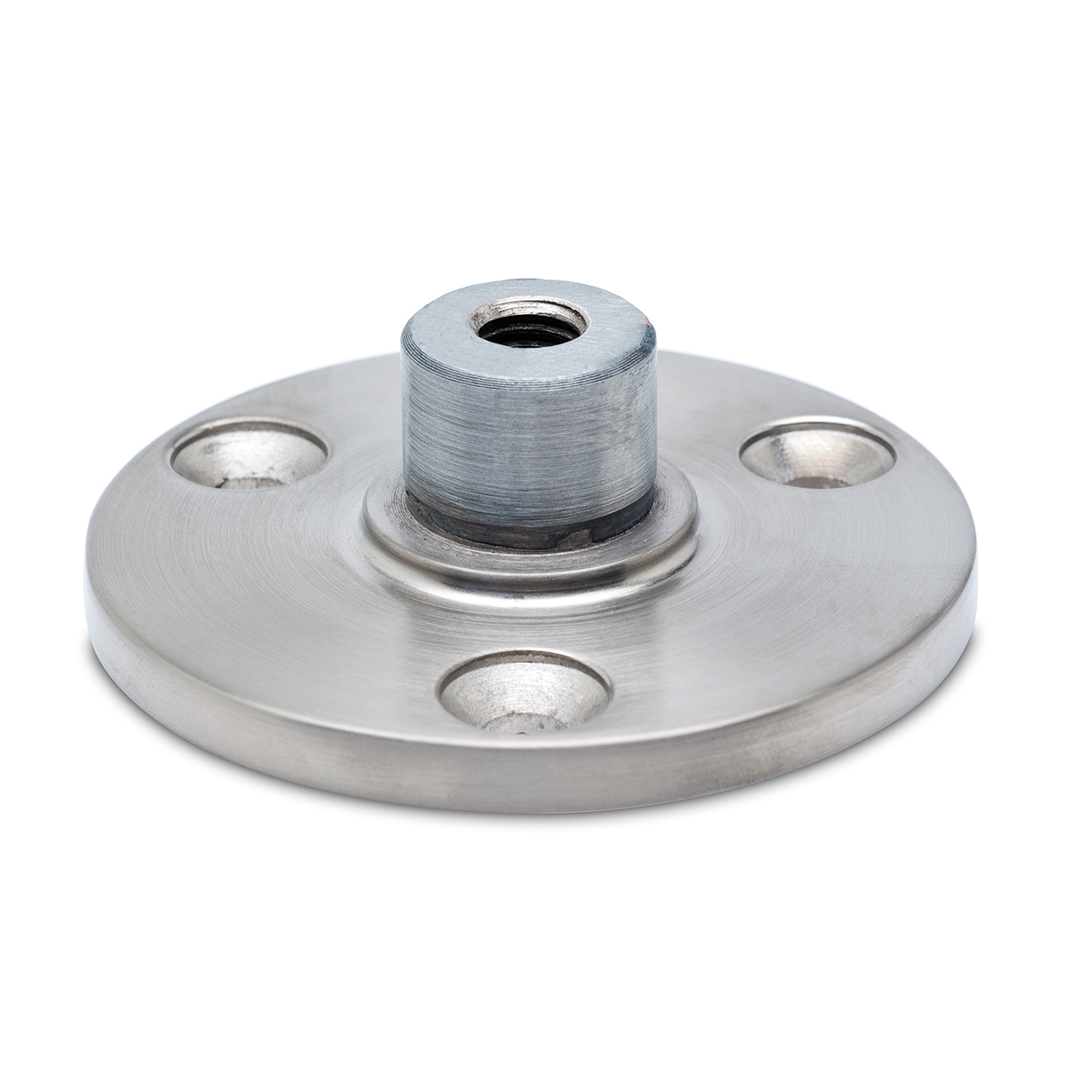 Der Innenflansch Nande von G-Fittings, wird als Abschluss für Fußlaufstützen verwendet. Mit dem innenliegenden M8 Gewinde kann die Stütze verschraubt werdenn und die 3 Bohrungen im Flansch sichern die Stütze entsprechend ab. Der Innenflansch ist in all unseren Oberflächen, wie Edelstahl, Messing und Chrom verfügbar, damit das Design der Fußlaufstütze einheitlich bleibt.
