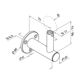 Justierbarer Handlaufhalter, Wandbef., Q-line, MOD 0142, V2A^