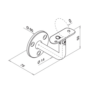 Justierbarer Handlaufhalter, Wandbefestigung, MOD 0102, V4A^