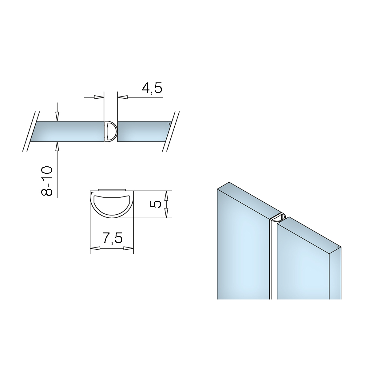 Die selbstklebende Streifendichtung Hakima eignet sich speziell für Glastüren und Glasduschen. Die Montage ist schnell und einfach durch den selbstklebenden Streifen umgesetzt. Dabei wird die Dichtung vor Kopf ans Glas geklebt. Die halbrunde Dichtung sorgt für einen sauberen und dichten Abschluss zwischen den Oberflächen.
